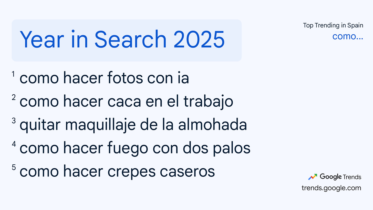 Google publica su informe anual con las búsquedas que definieron 2025, revelando un aumento marcado en queries sobre IA aplicada al día a día, salud mental, side hustles y economía doméstica.