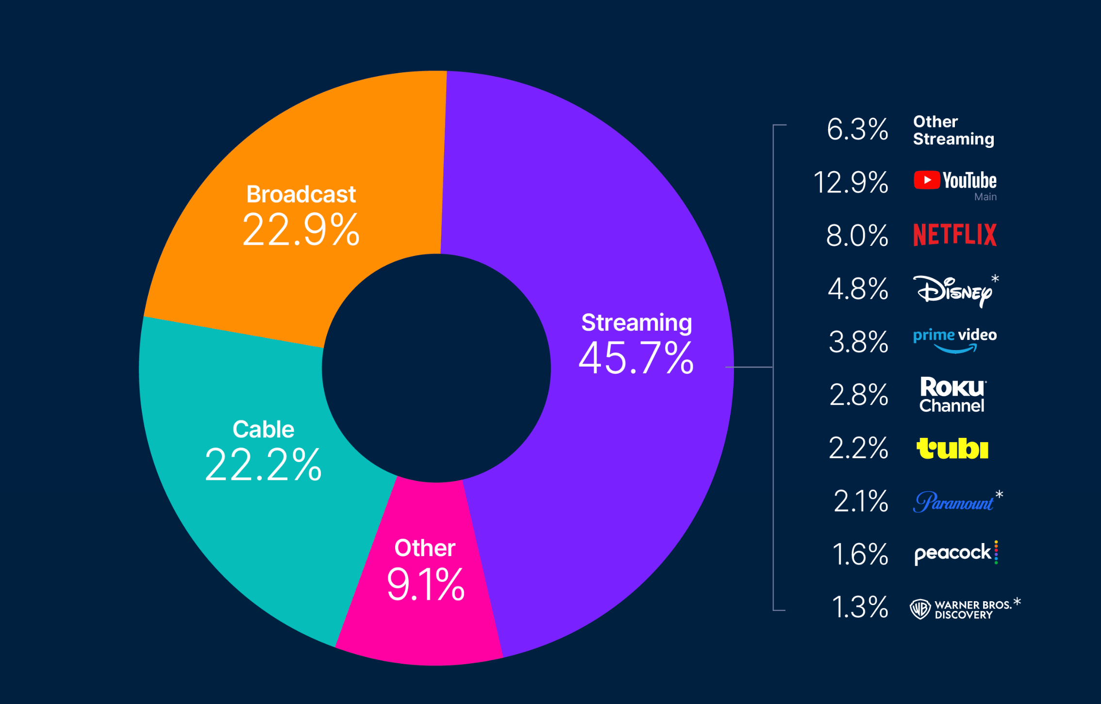 Los datos de Nielsen (Q3 2024) muestran una anomalía que las juntas directivas están subestimando: YouTube captura el 11,7% del tiempo total de pantalla en smart TVs, superando por primera vez a Netflix (7,6%) en el segmento de 18-34 años.