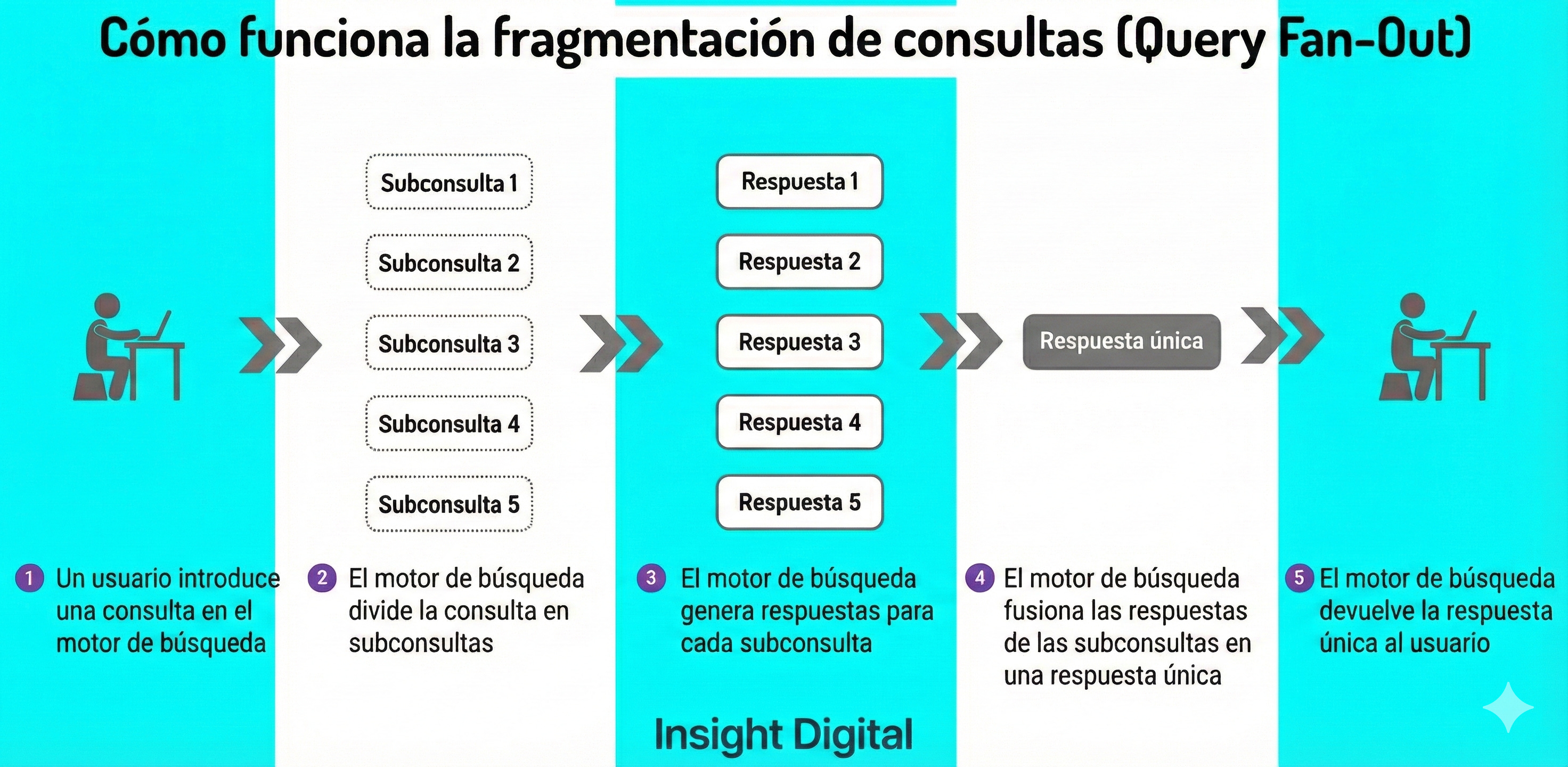 La reescribe. La trocea. La convierte en tres o cuatro queries que tú nunca escribiste pero que determinan si tu contenido aparece o no en la respuesta.